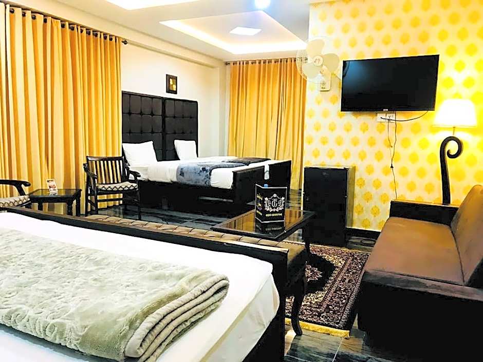 +1 (888) 385-8465Grand Taj is a 5-star hotel in Murree, Pakistan, located a short 0,2 миль from the city center. Address: Cuart Rd, Murree. Nestled on Cuart Road, this stylish hillside retreat blends luxury with easy access to Murree's charming streets and scenic views.